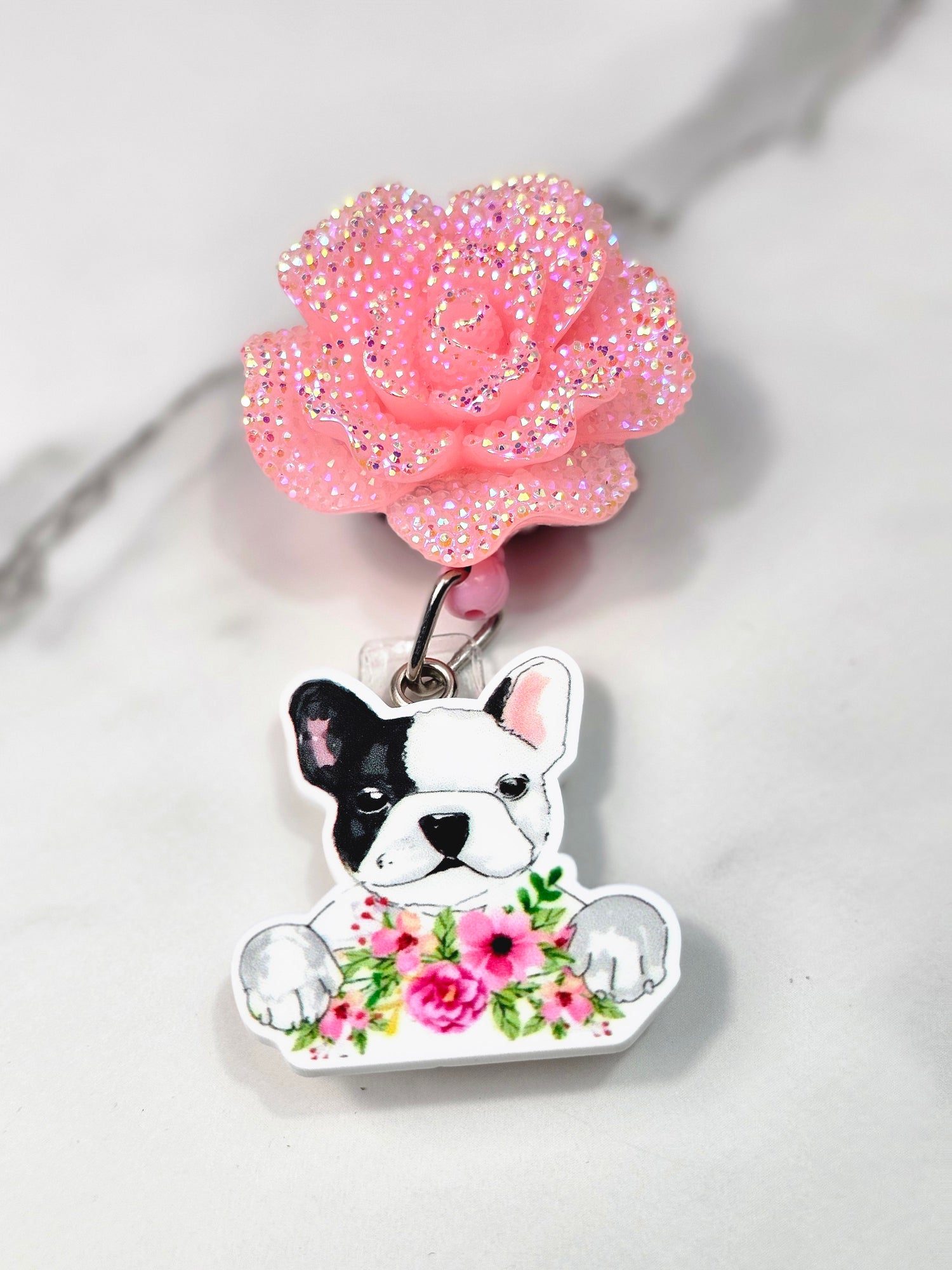 Pink bling flower with Boston Terrier garden on tail