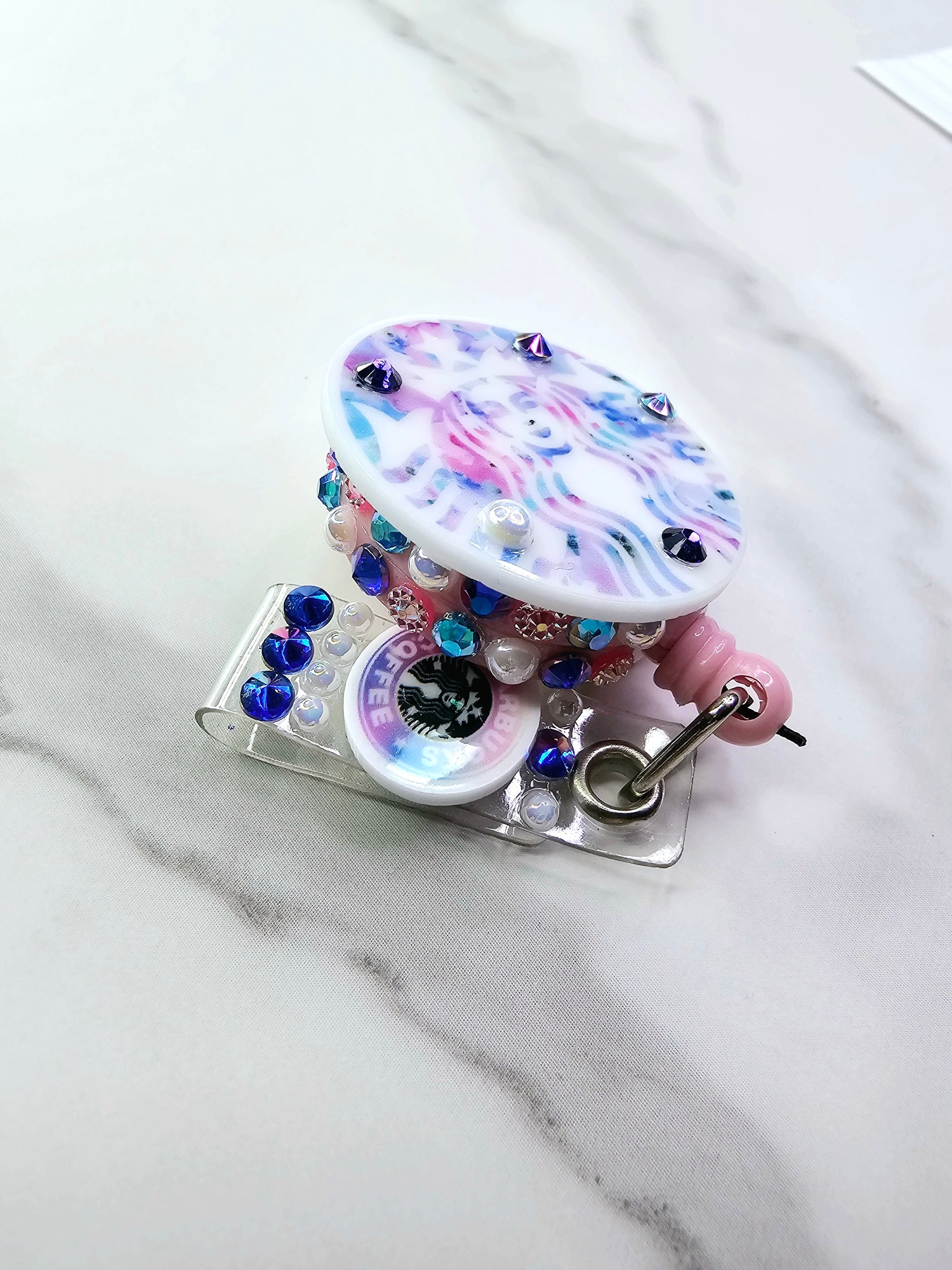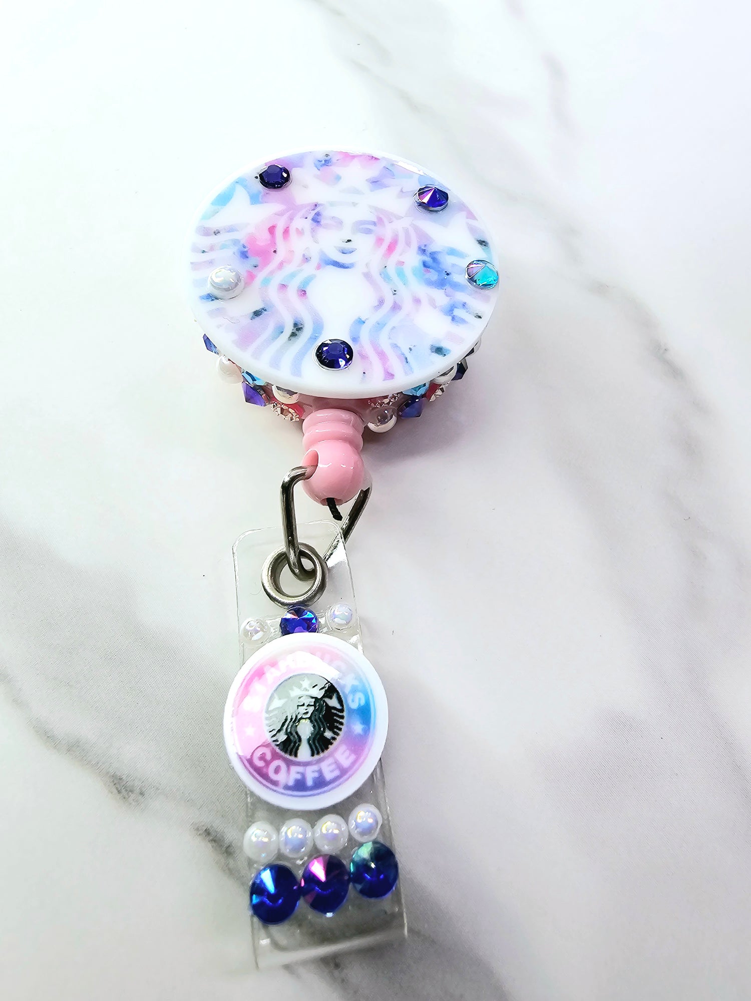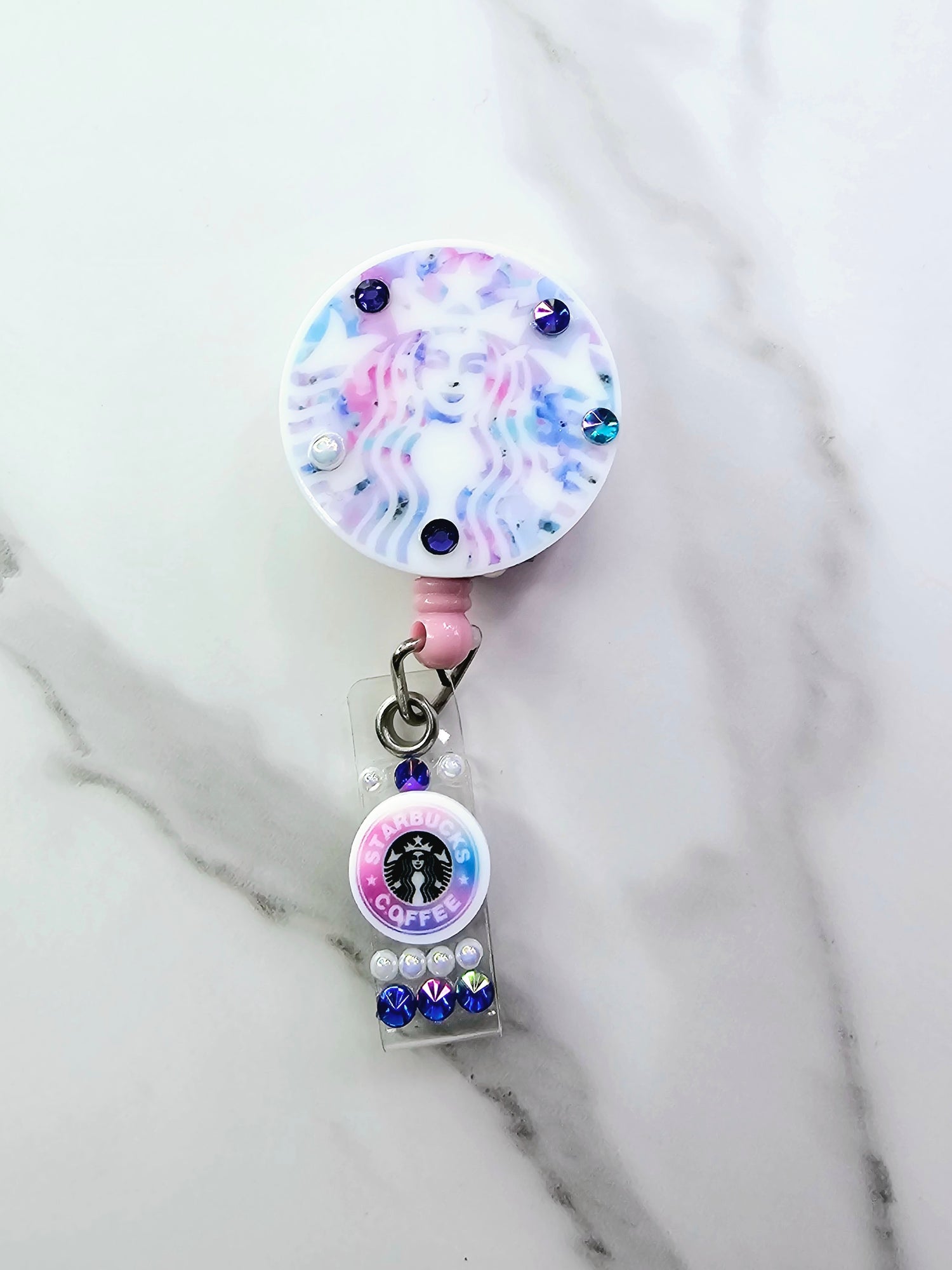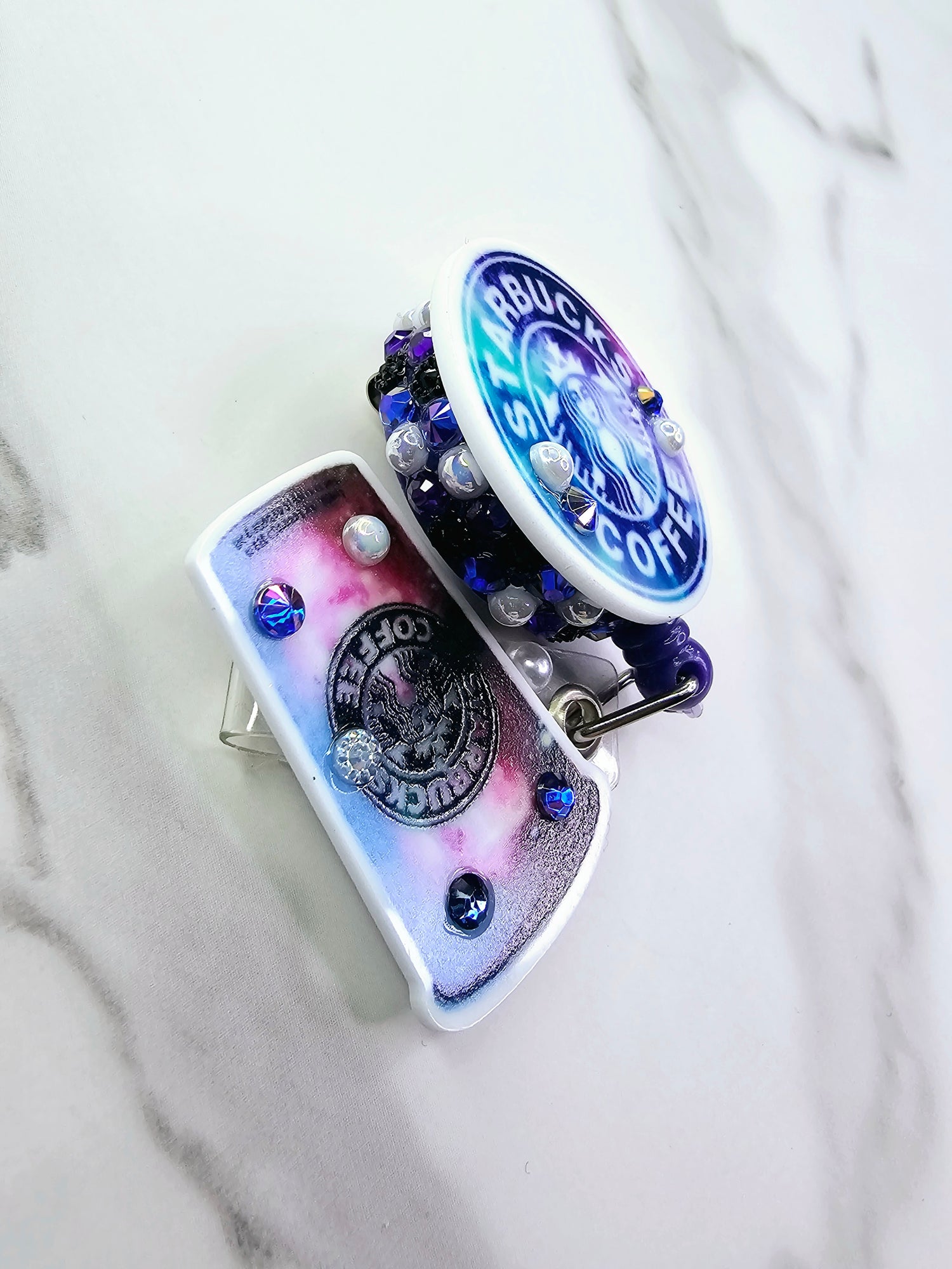 •Galaxy SB logo on pink badge w/mini logo & rhinestones • Dark Galaxy logo on purple badge w/large cup • Galaxy SB logo on blue badge w/mini logo