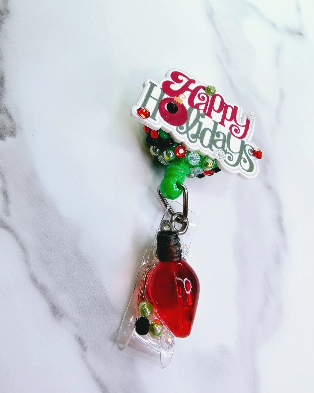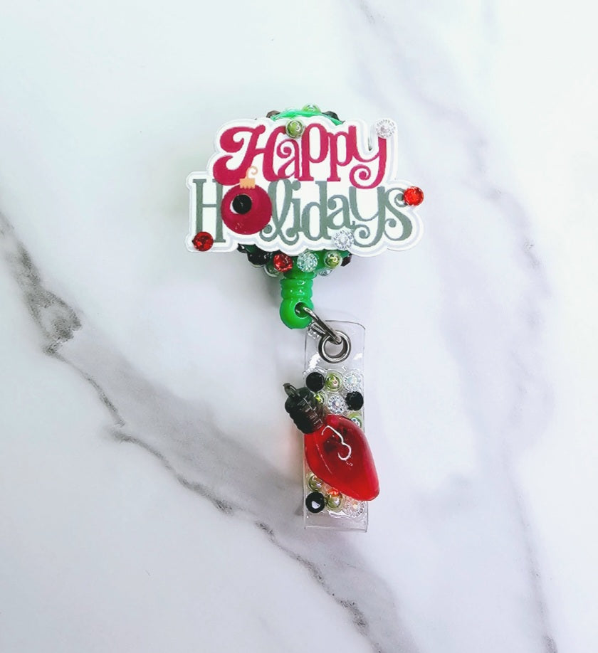 "Happy Holidays" with holiday bulb on the tail
