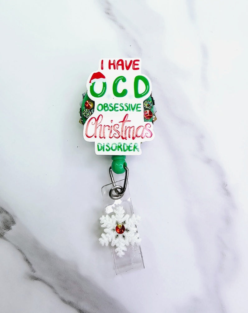 "I have OCD, Obsessive Christmas Disorder" with snowflake on the tail