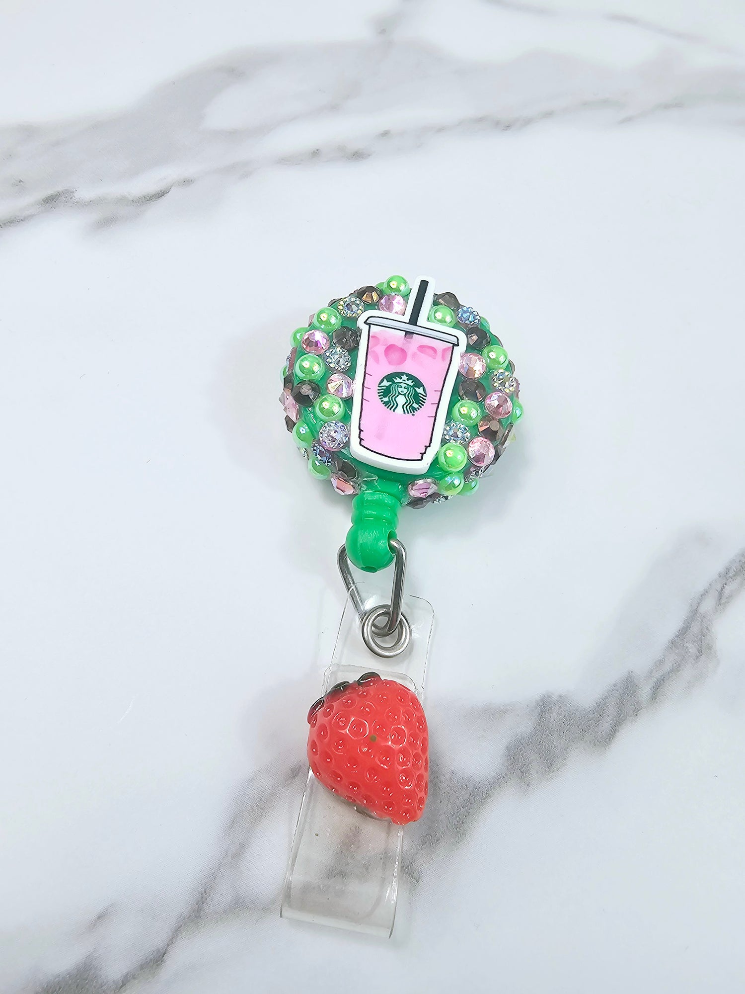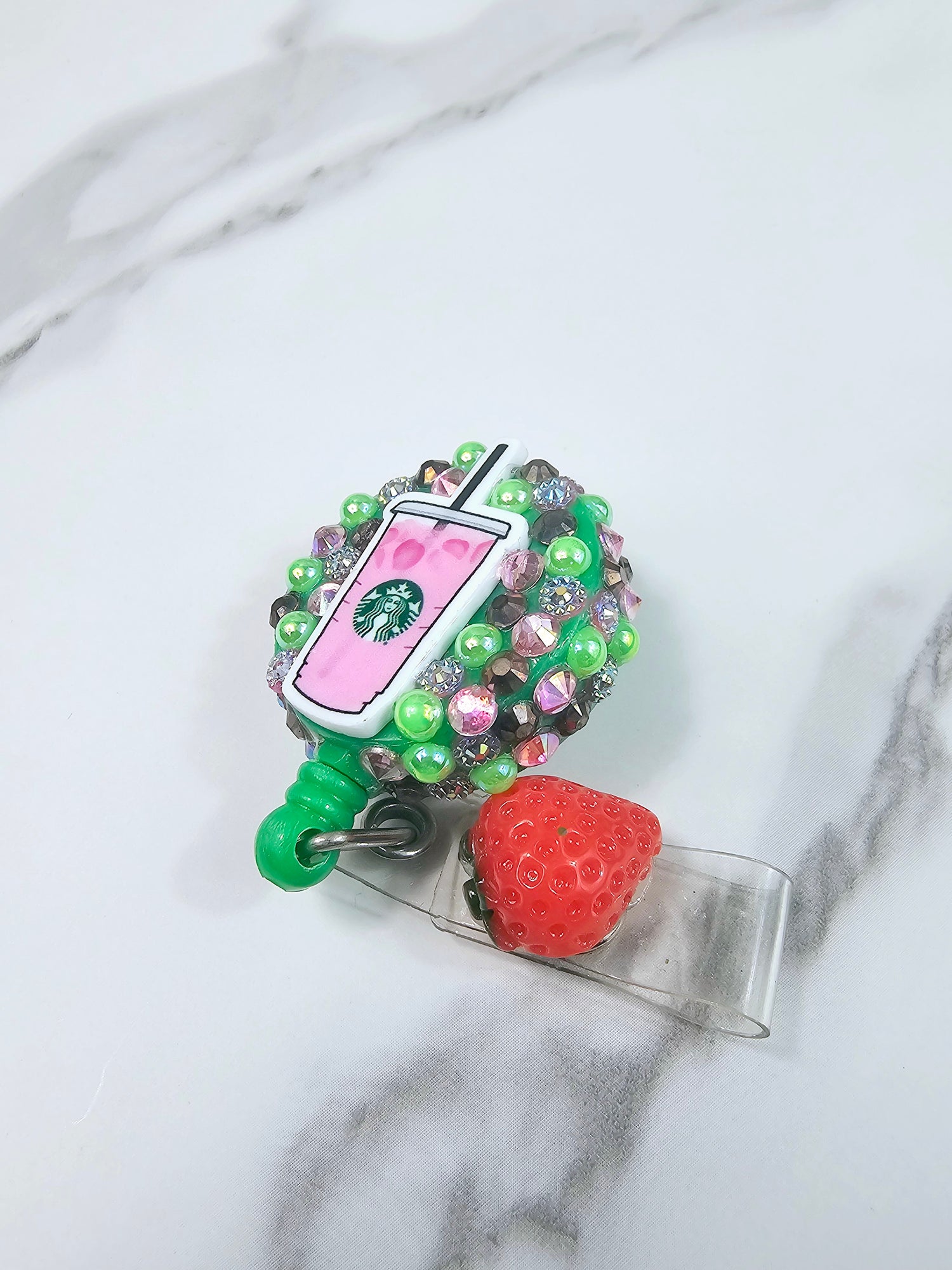Pink drink with a strawberry on the tail